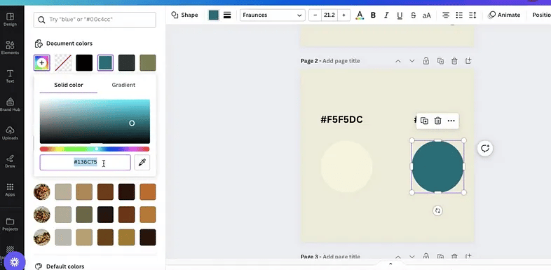 Go to ChatGPT & ask for Hex codes. With Hexc odes you can directly pick your color on Canva.
