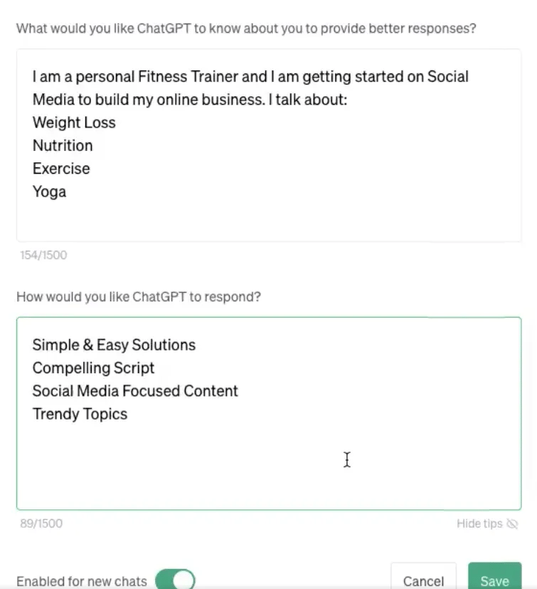 Generate scripts, text, quotes for your coaching sessions using ChatGPT.